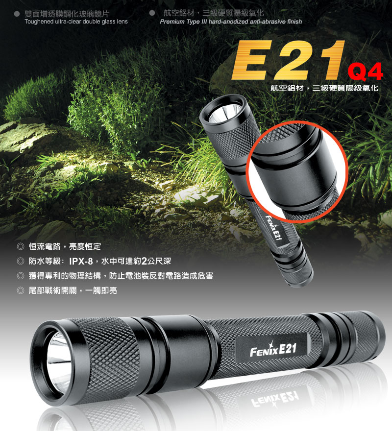E21 Q4 ¤¤¥Õ¥ú¬O¤@´ÚFENIXºë¤ß¥´³yªº¡u¤è«K©ö¥Î«¬¤á¥~¤â¹qµ©¡v¡A°ª«G«×ªºLED¥[¤Wºë¤ß³]pªº»·µ{¤Ï¥úªM¡A¦bªx¥ú»P»E¥ú¤§¶¡¹F¨ì¤F¥©§®ªº¥¿Å¡A¦b·Ó®g¶ZÂ÷¤W»·ªñ¬Ò©y¡A¥i¥H¨³³t¤Á´«ªº¨â¬q«G«×¡A°t¦X¤@IJ§Y«Gªº¾Ô³N¶}Ãö¡A¯à§Ö³tº¡¨¬±zªº¤£¦P¤á¥~·Ó©ú»Ý¨D¡A±Ä¥Î2ÁûAA¹q¦À(¤ºªþ)³]p©M°ª®Äªº½Õ¥ú¹q¸ô¡AÅýE21¾Ö¦³¤F¥R¨¬ªºÄò¯è®É¶¡¡C