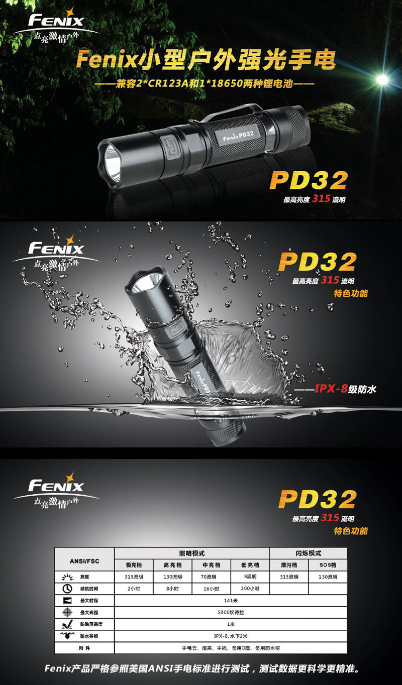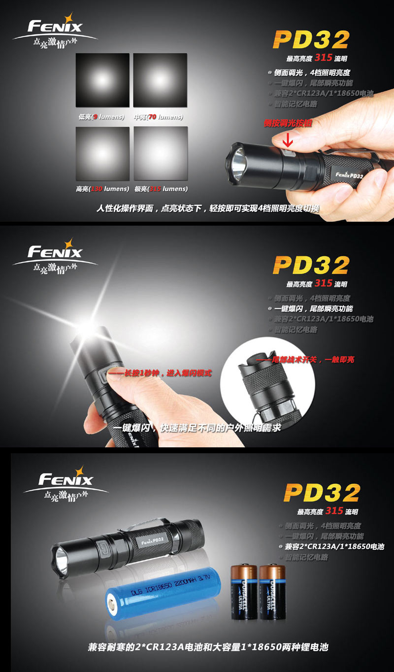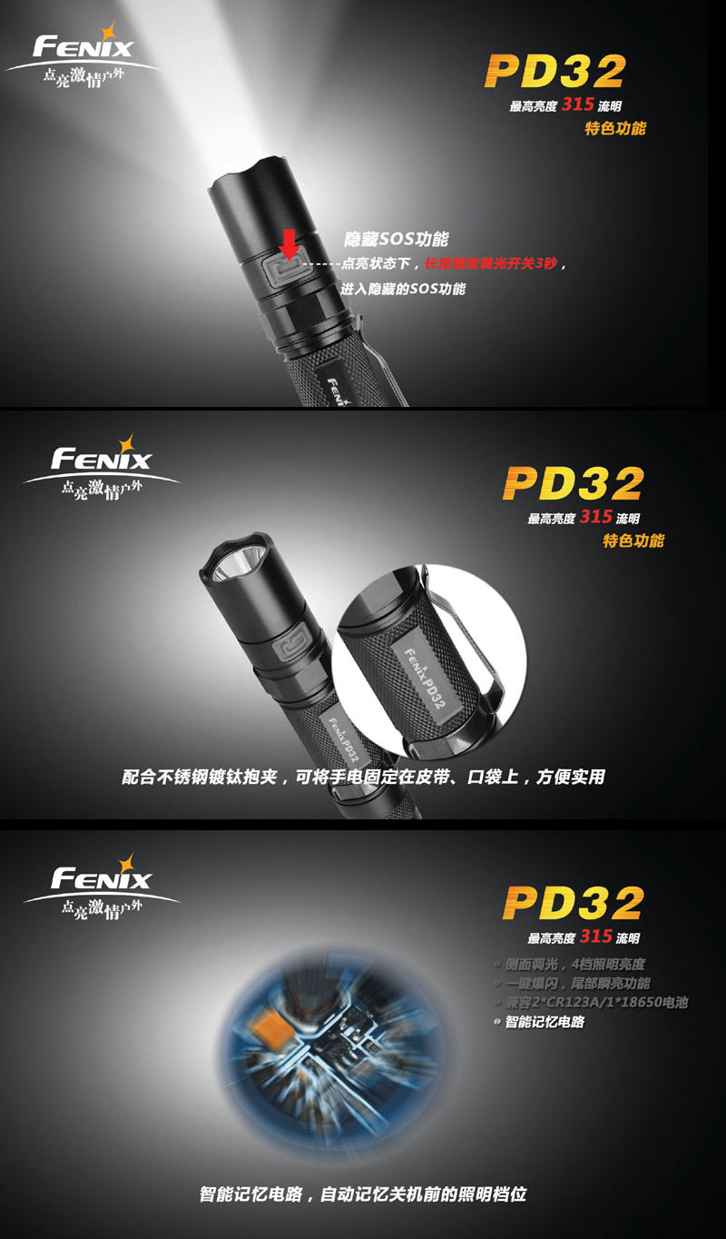 4 ºØ«G«×¬q¦ì©M 2 ºØ°{Ã{¼Ò¦¡¡A¥i¥H³q¹LÀY³¡°¼«ö¶}Ãö¤@Áä±±¨î¡A¤è«K§Ö±¶¡A«Ü¦n¦aÝÅU¤F»Ýn¤£¦P«G«×©MÄò¯è®É¶¡ªºÀ³¥Î³õ¦X¡C PD32 »´¥©«KÄâ¡A¥i¥H¨Ï¥Î@´Hªº CR 123A ¡B¤j®e¶qªº 18650 ¾YÂ÷¤l¨âºØ¹q¦À¡A¦b´H§N¦a°Ï¤]¦³¤W¨Îªí²{¡A¦A¥[¤W¥ý¶iªºùÚ©w«G«×§Þ³N¡B IPX-8 ¯Å¨¾¤ô¡A¬Û«H PD32 ¬O§AÀ³¹ï¦hºØ¤á¥~·Ó©ú»Ý¨D¤Îºò«æª¬ªpªº³Ì¨Î¹Ù¦ñ¡C