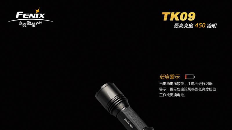 手電電路有低壓警示功能,如果電池電壓較低,手電則會進行閃爍警示。當手電在工作時出現閃爍警示,請將手電調整到較低亮度檔位工作;當手電工作在低亮檔時出現閃爍警示,您應該及時更換電池。