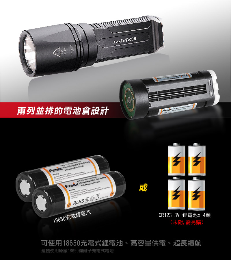 ¡·¨Ï¥Î4¸`3V CR123A¾Y¹q¦À(¥¼ªþ,»Ý¥tÁÊ)©Î2¸`18650¥i¥R¾Y¹q¦À