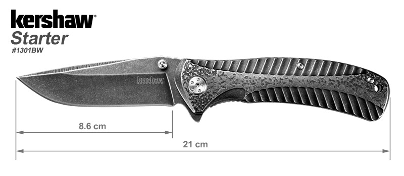 - Stainless steel blade, black-oxide BlackWash™ finish