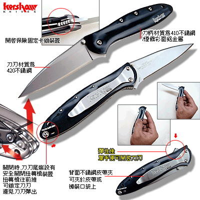 座落於美國奧勒岡州的 KERSHAW刀具公司在過去22年中廣為全世界人們所接受使用,在經過各界人士的好評中,Kershaw不斷精益求精,以期提供世上品質最優良的產品。簡單的設計,高品質的製作,每款刀都是以實用用途為主要訴求,從一般隨身輕形用刀到露營用刀到近幾年的格鬥用刀,都是您的最好選擇,您也會發現KERSHAW所出產的刀真的是實用的刀款。