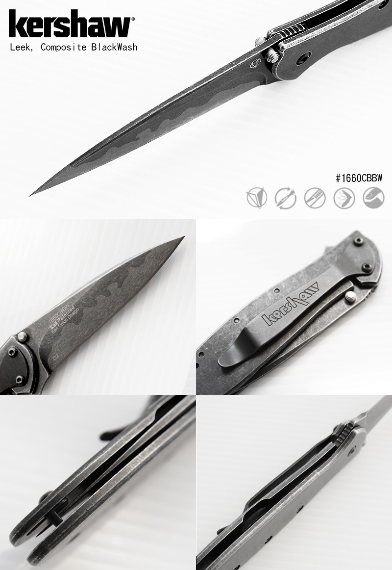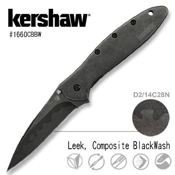 - Steel: Sandvik D2/14C28N, black-oxide BlackWash™ finish