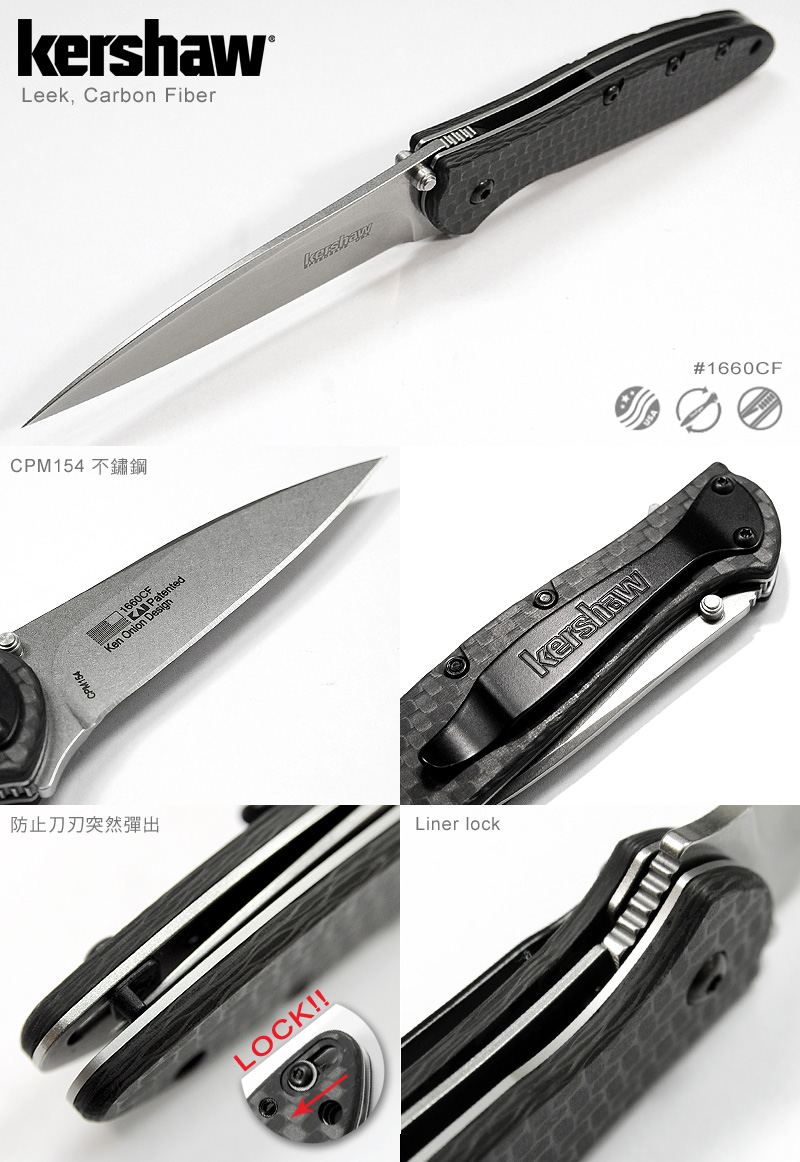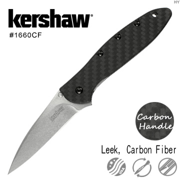 KERSHAW LEEK 碳纖柄/石洗刃折刀 型號:#1660CF