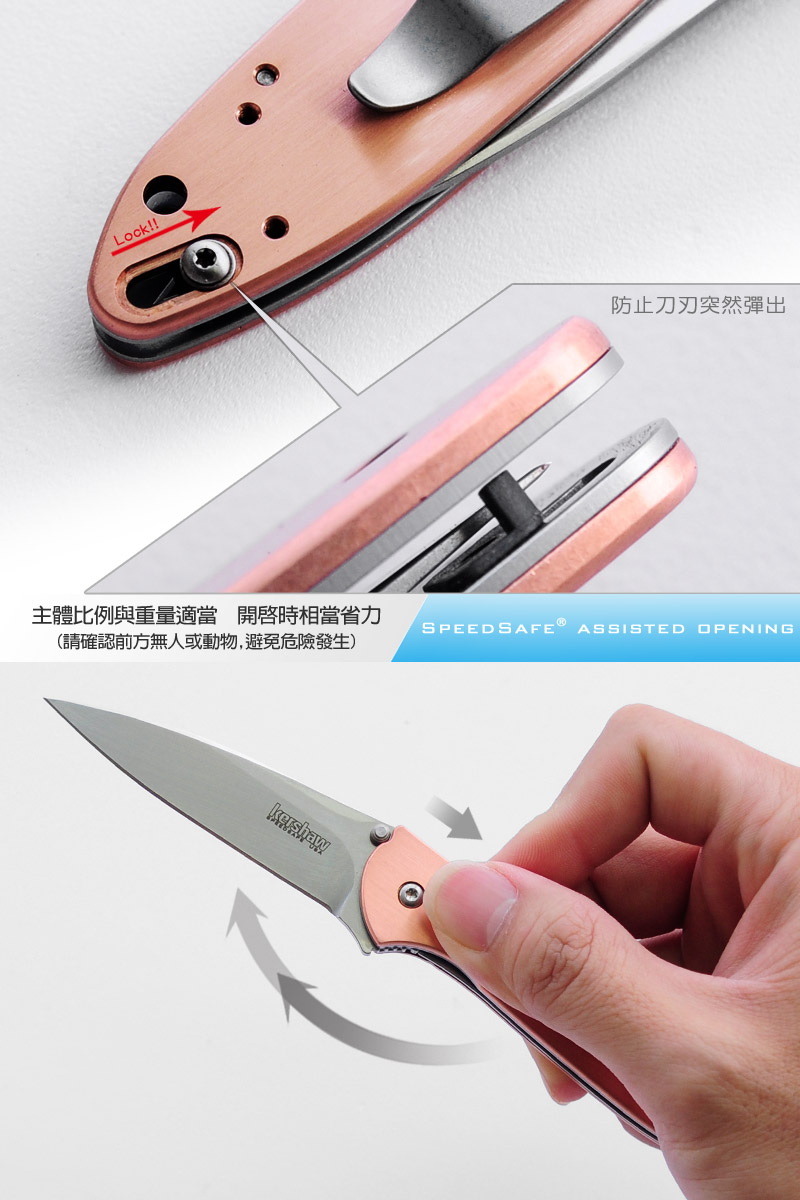 - SpeedSafe®輔助及撥片可快速輕鬆開啟;安全鎖定可在刀刃關閉時固定折刀