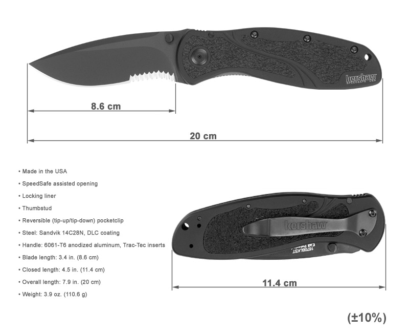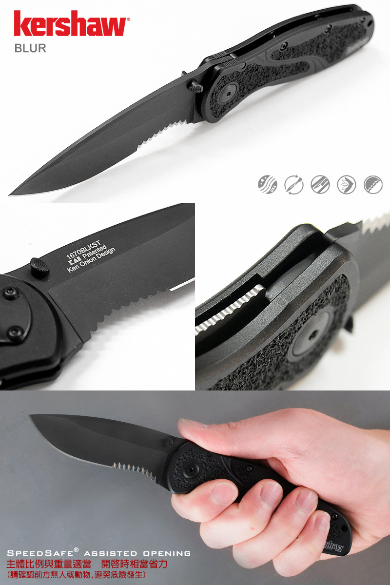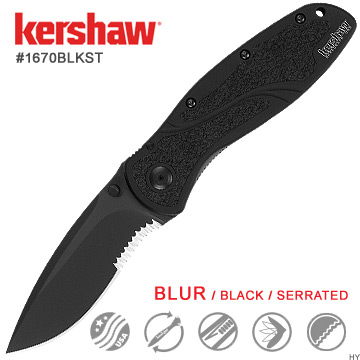 Kershaw Blur黑刃半齒折刀 型號:#1670BLKST