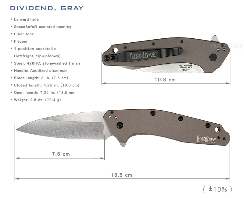 品名:Kershaw DIVIDEND,GRAY石洗平刃/灰色握柄折刀(#1812GRY)