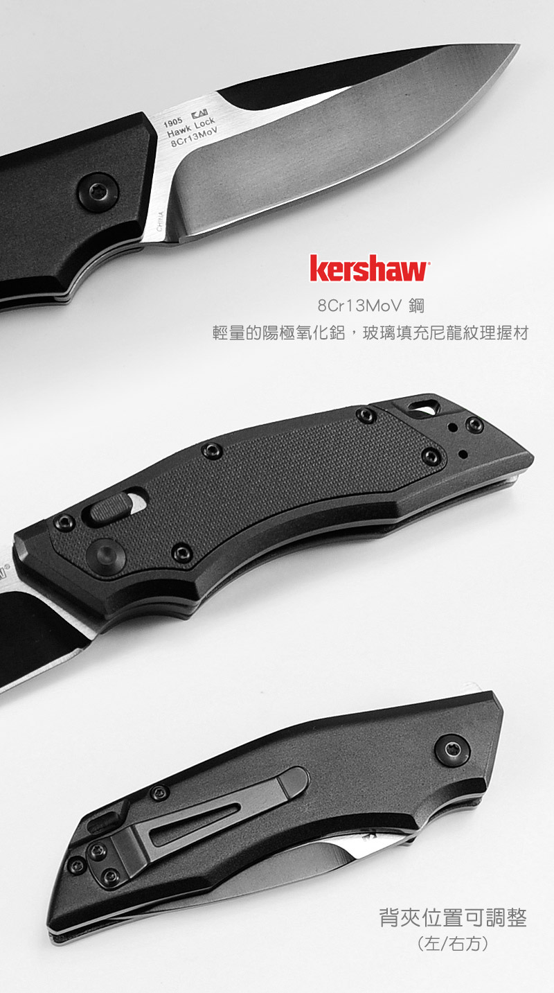 【KERSHAW歷史簡介】 座落於美國奧勒岡州的 KERSHAW刀具公司在過去22年中廣為全世界人們所接受使用,在經過各界人士的好評中,Kershaw不斷精益求精,以期提供世上品質最優良的產品。簡單的設計,高品質的製作,每款刀都是以實用用途為主要訴求,從一般隨身輕形用刀到露營用刀到近幾年的格鬥用刀,都是您的最好選擇,您也會發現KERSHAW所出產的刀真的是實用的刀款。