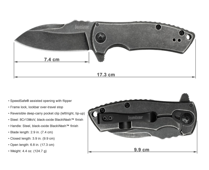 Steel: 8Cr13MoV, black-oxide BlackWash™ finish