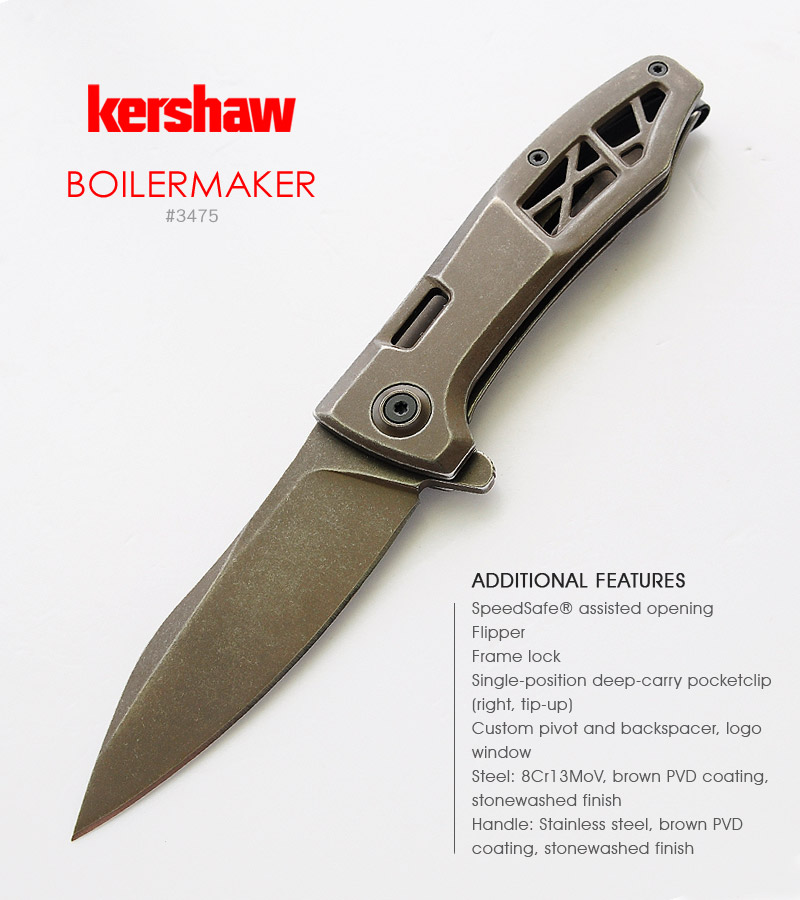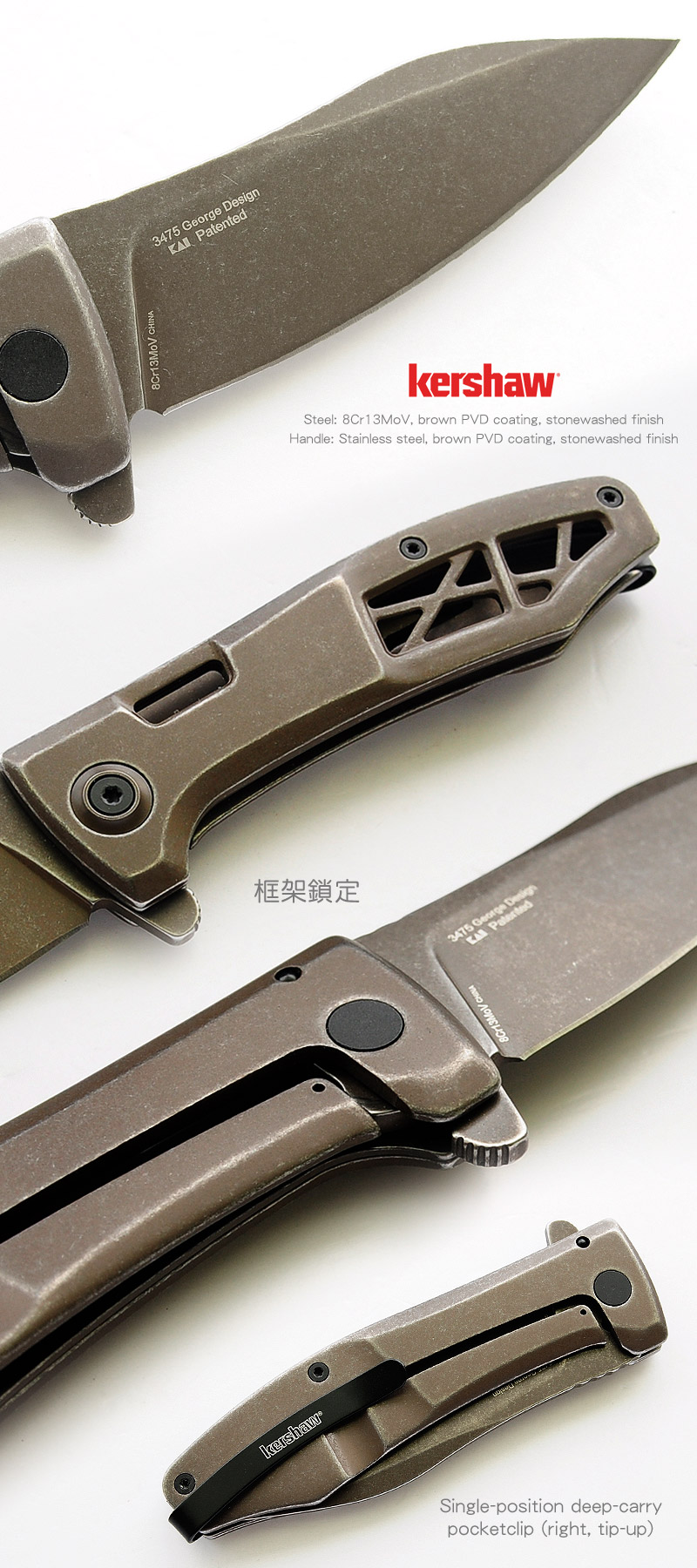Steel: 8Cr13MoV, brown PVD coating, stonewashed finish
