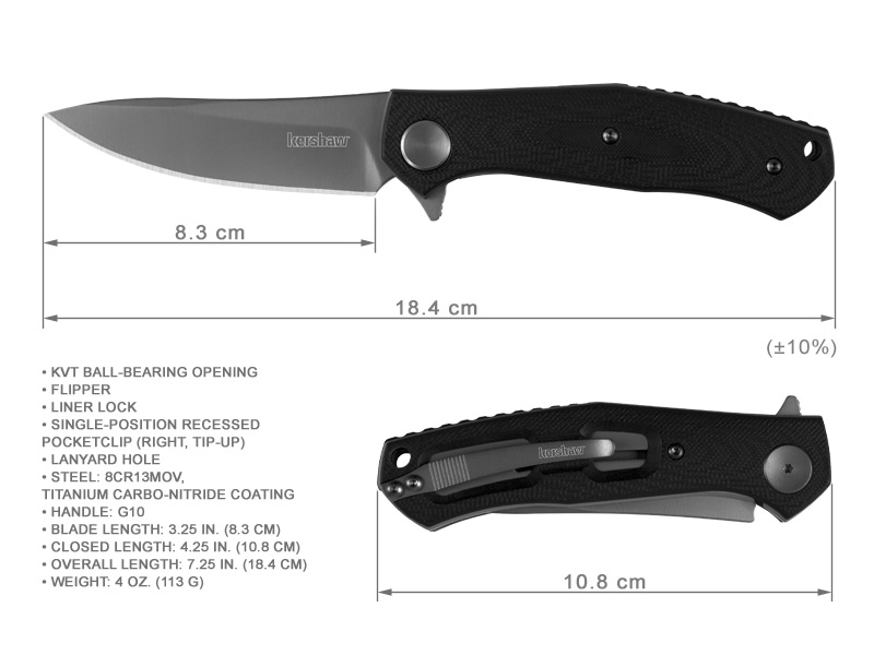 刀刃長(±10%):3.25 in. (8.3 cm)