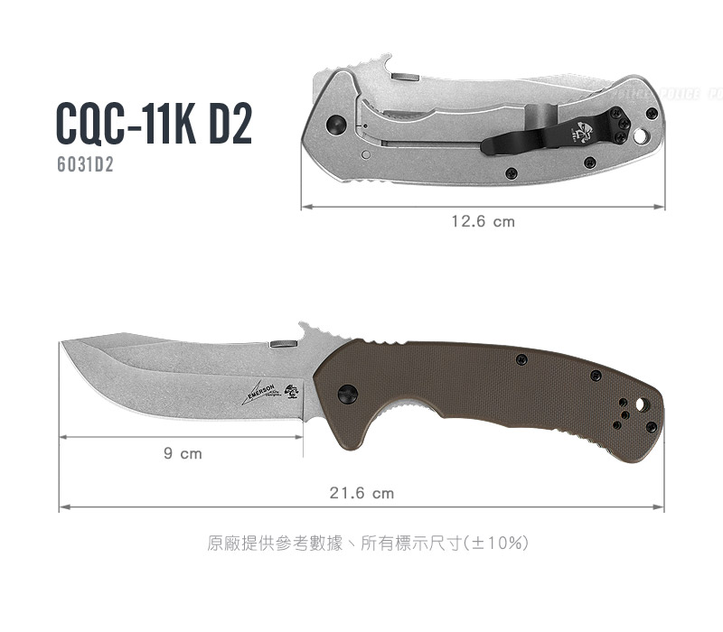 ※本產品說明,僅供參考,請勿作為正式採購招標規格,如有需要,請來電我司洽詢相關業務人員。 ※以下原廠提供參考數據。 品名:Kershaw Emerson CQC-11K D2 折刀 型號:#6031D2