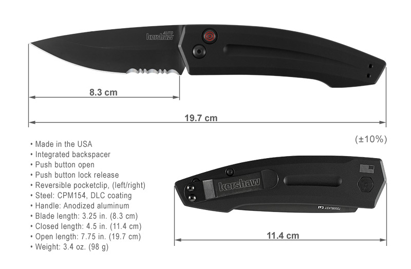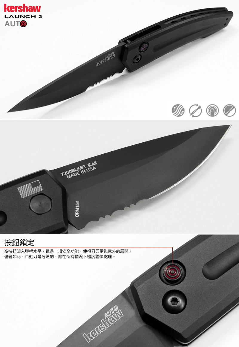 品名:KERSHAW LAUNCH 2 黑色半齒半刃自動折刀
