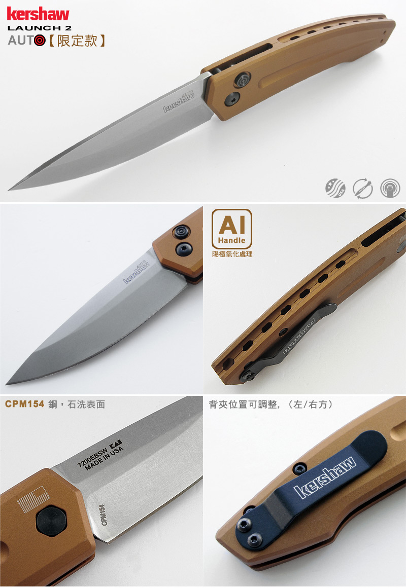 品名:Kershaw LAUNCH 2 限定款自動折刀/青銅色柄