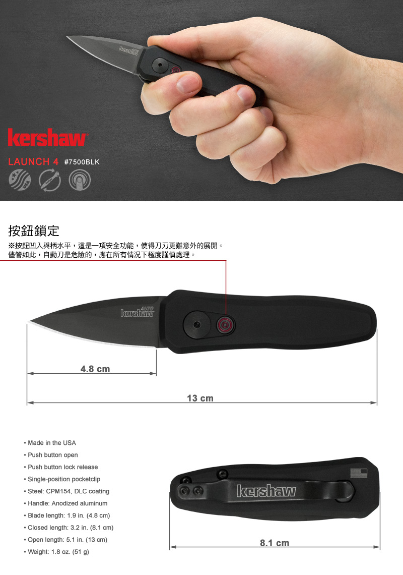 Kershaw LAUNCH 4 自動折刀 型號:#7500BLK
