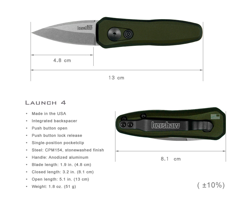 品名:Kershaw Launch 4限定款迷你自動折刀/綠柄