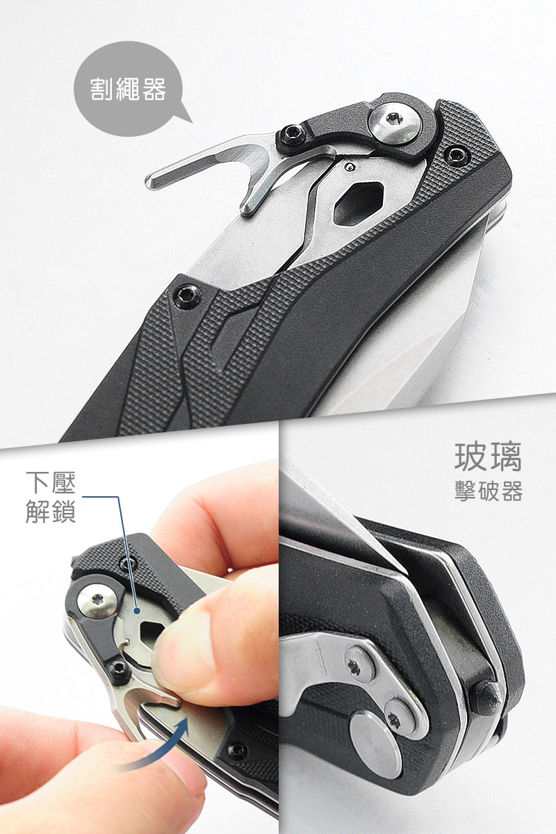 》附帶刀片和硬質合金玻璃破碎器尖端的應急刀