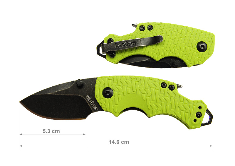 ※原廠提供參考數據 品名:Kershaw Shuffle 折刀 型號:#8700LIMEBW 綠柄、#8700TEALBW 藍柄、#8700PURBW 紫柄 線鎖(liner lock) 鋼材:8Cr13MoV,石洗處理 握把材: 強化樹脂尼龍 刀刃長:5.3cm( ±5﹪) 折合長:8.3cm( ±5﹪) 全長:14.6cm( ±5﹪) 重量:81g( ±5﹪) ※未滿18歲 兒童及少年,請勿購買刀械。