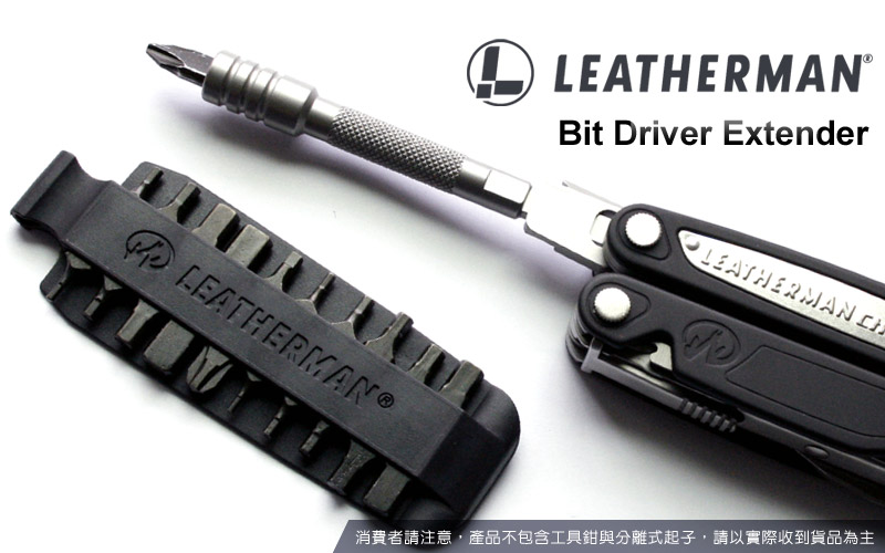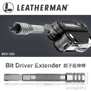 LEATHERMAN Bit Driver Extender鑽頭/起子延長工具,長3.25英寸,與LEATHERMAN 標準的bits和hex bits (六角鑽頭)搭配使用,在需要時,延伸鑽頭/起子,應用於工作上更得心應手。可使用在LEATHERMAN 工具鉗或刀子系列有大的bit driver 置放卡榫的產品。如:Charge系列、Surge、Wave工具鉗、e306x / e307x、K502x / K503x、h502 /h503。