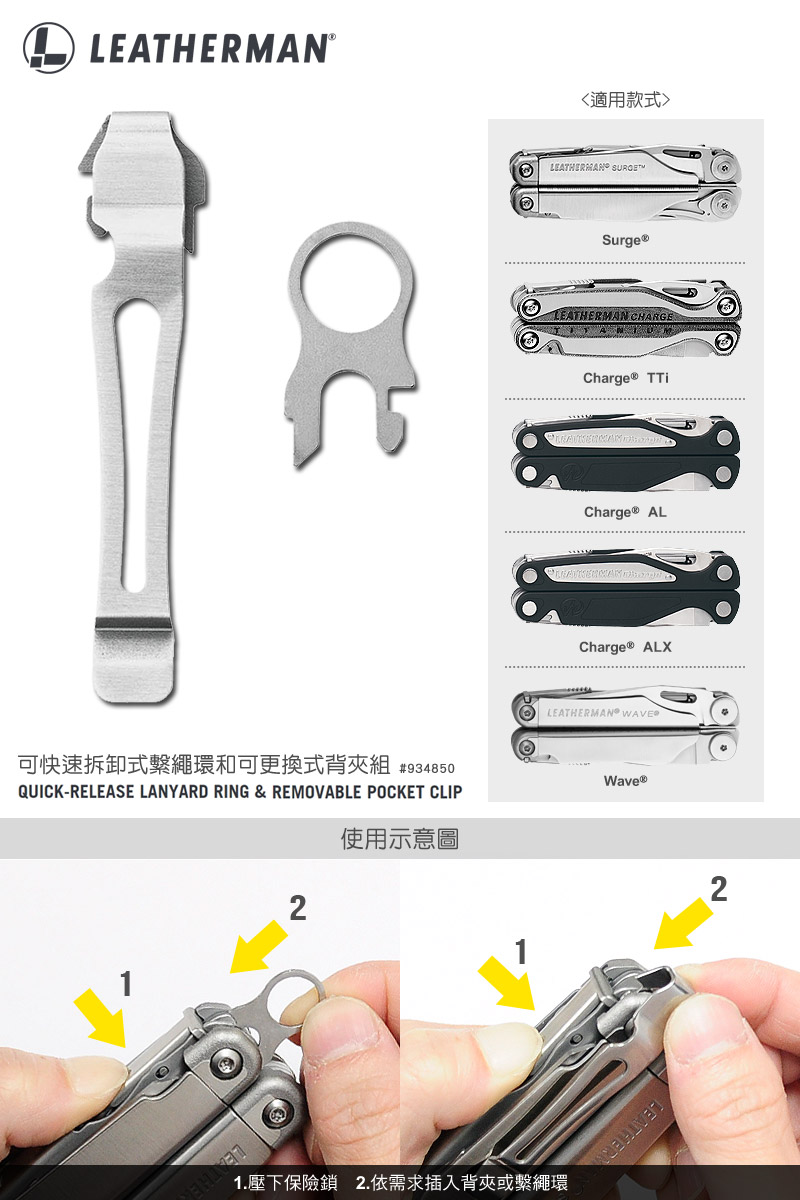 LEATHERMAN 可快速拆卸式繫繩環和可更換式背夾組(銀) 【型 號】#934850