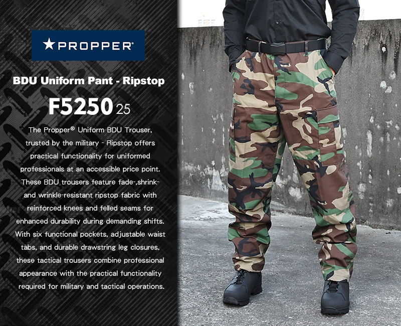 Propper® 軍用 BDU 制服褲,深受軍方信賴的抗撕裂布料,以親民的價格提供實用功能。這款 BDU 制服褲採用抗褪色、抗縮水、抗皺的抗撕裂布料,膝蓋處加強,包縫工藝,即使在高強度的工作環境下也能保持耐用性。六個實用口袋、可調式鬆緊帶和耐用的抽繩褲腳,使這款戰術褲兼具專業外觀和軍事及戰術行動所需的實用功能。
