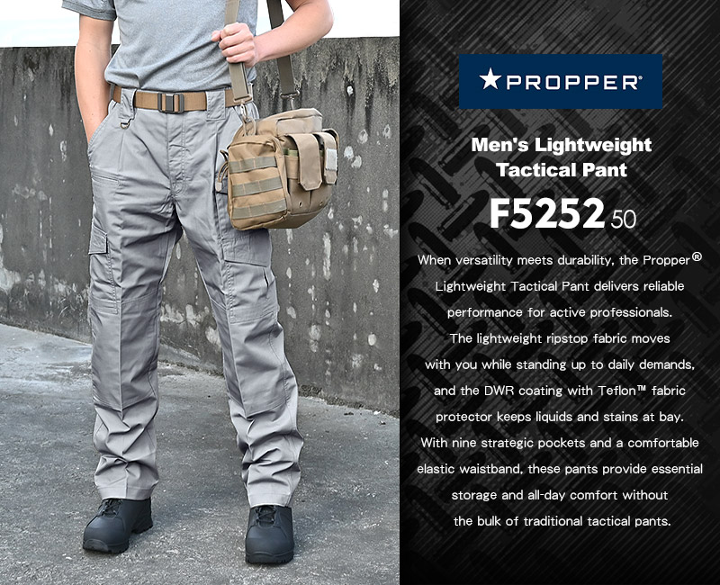 當多功能性與耐用性完美結合,Propper® 輕量戰術褲可為活躍的專業人士提供可靠的性能。輕盈的防撕裂布料活動自如,同時又能應付日常挑戰;DWR 防水塗層搭配 Teflon™ 布料保護劑,有效抵禦液體和污漬的侵蝕。9個實用口袋和舒適的彈性腰帶,在提供必要儲物空間的同時,也確保了全天穿著的舒適性,擺脫了傳統戰術褲的臃腫感。