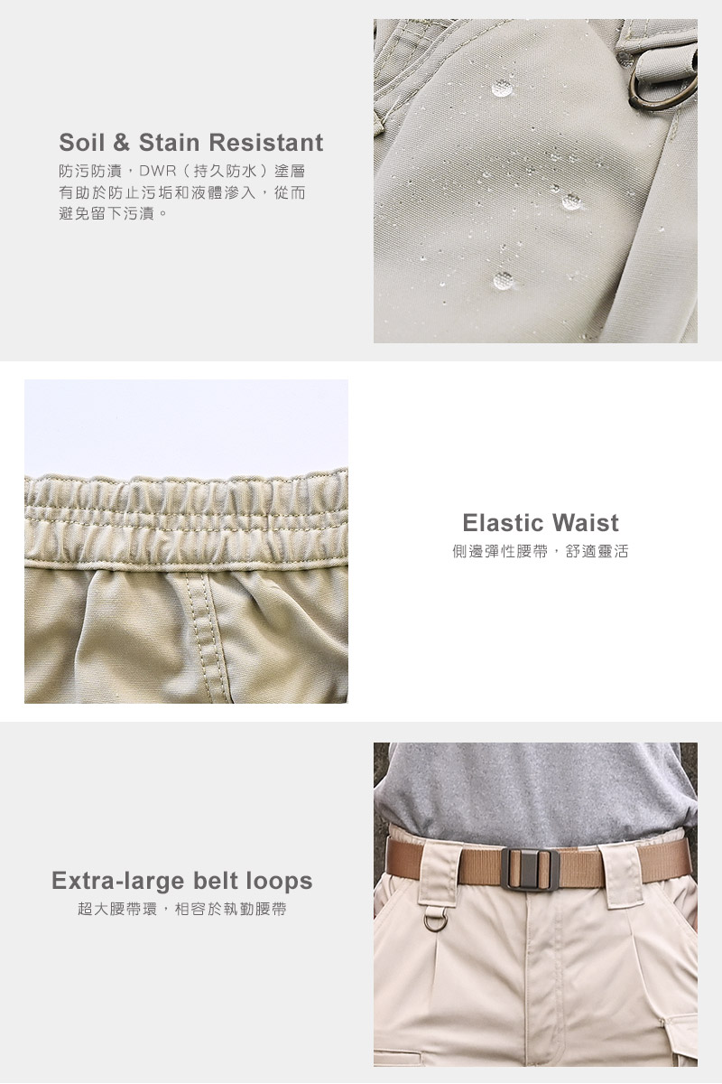 Propper®男士戰術褲採用高性能、耐用的8.5盎司65%聚酯纖維/35%棉帆布布料,並經Teflon™布料保護劑處理,可有效抗污抗水。九個口袋、彈性腰帶和超大腰帶環,讓您舒適攜帶裝備。臀部和膝蓋處加強提供了額外的耐用性,而膝蓋處的內部開口可以置入護膝。