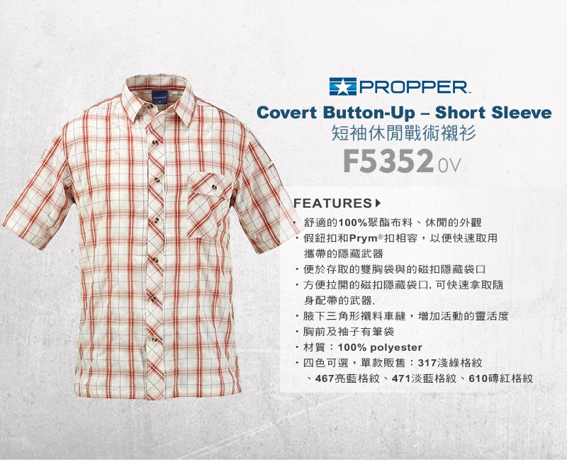 PROPPER Covert Button-Up – Short Sleeve 短袖休閒戰術襯衫 型號: