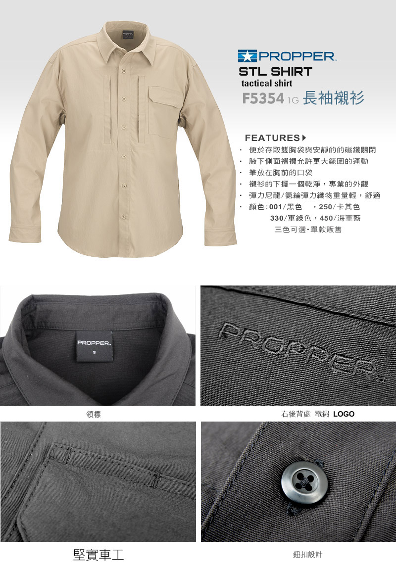 作為美國軍隊的服裝最大的官方供應商之一,從越南戰爭到目前在阿富汗服役, PROPPER INTERNATIONAL 自豪地;生產服裝給美國國防部陸軍,空軍,海軍,海軍陸戰隊,海岸警衛隊和特種部隊超過 120 多萬件。 PROPPER 也生產高品質服裝給商業軍事,戰術,執法和公共安全的市場。 PROPPER 商業產品銷售到 3000 多家軍事,執法和專業全球的零售商店和網站。