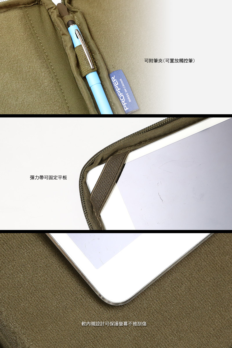 •內部固定設計讓您的平板電腦可以同時存放及使用。