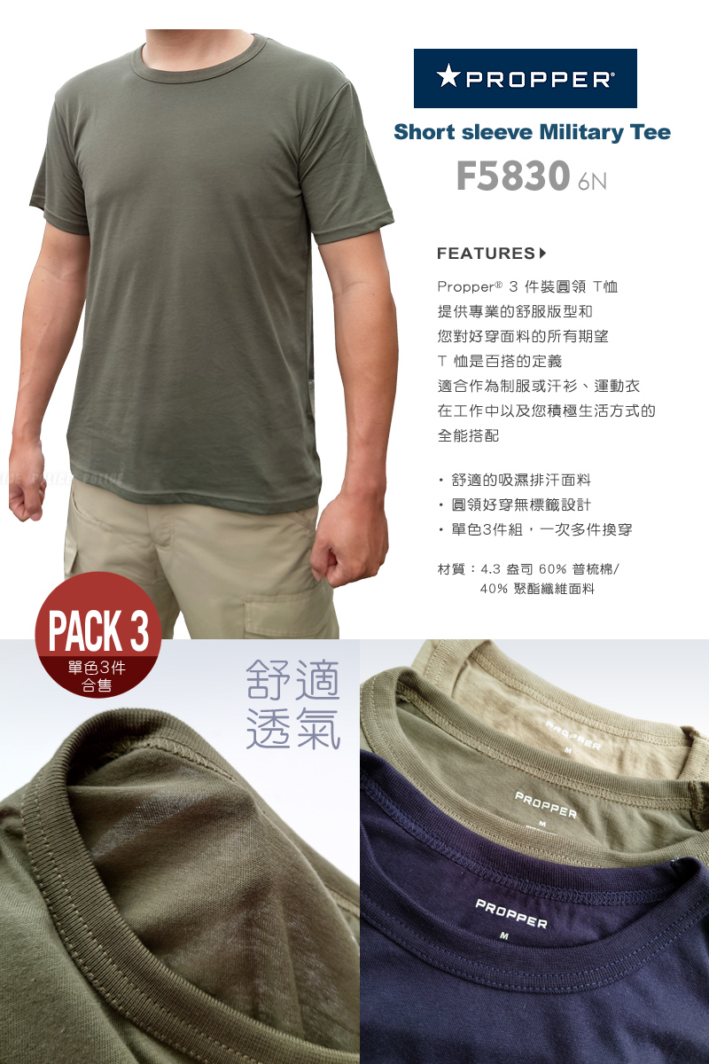 品名:Propper 3-Pack Crew Neck Tee 圓領T恤-單色三件裝