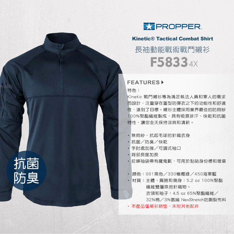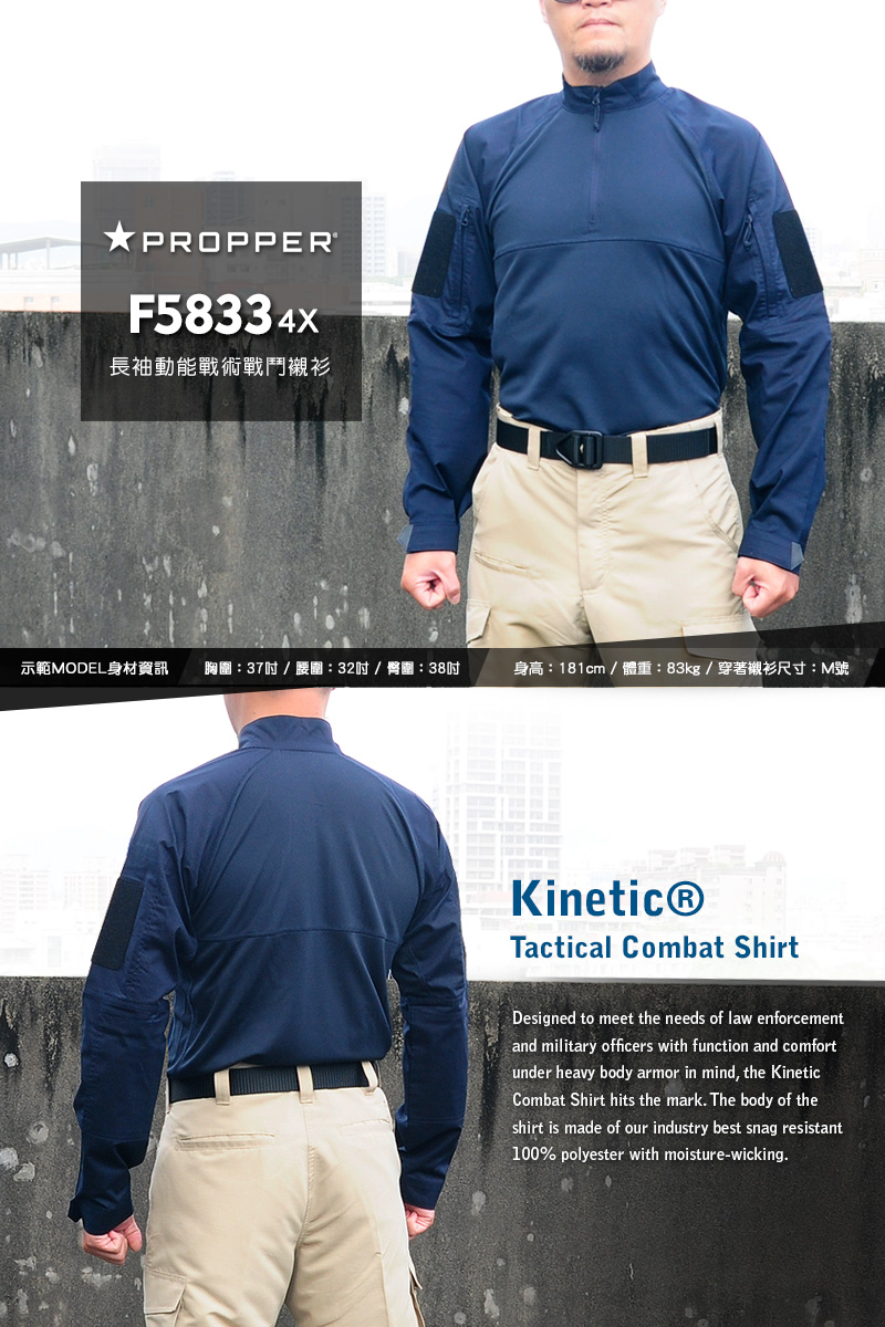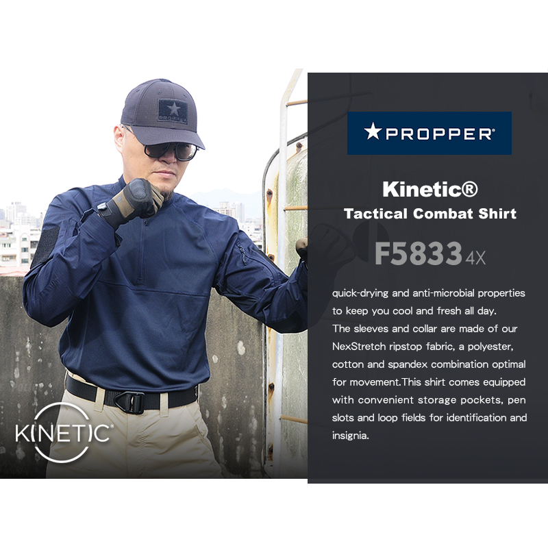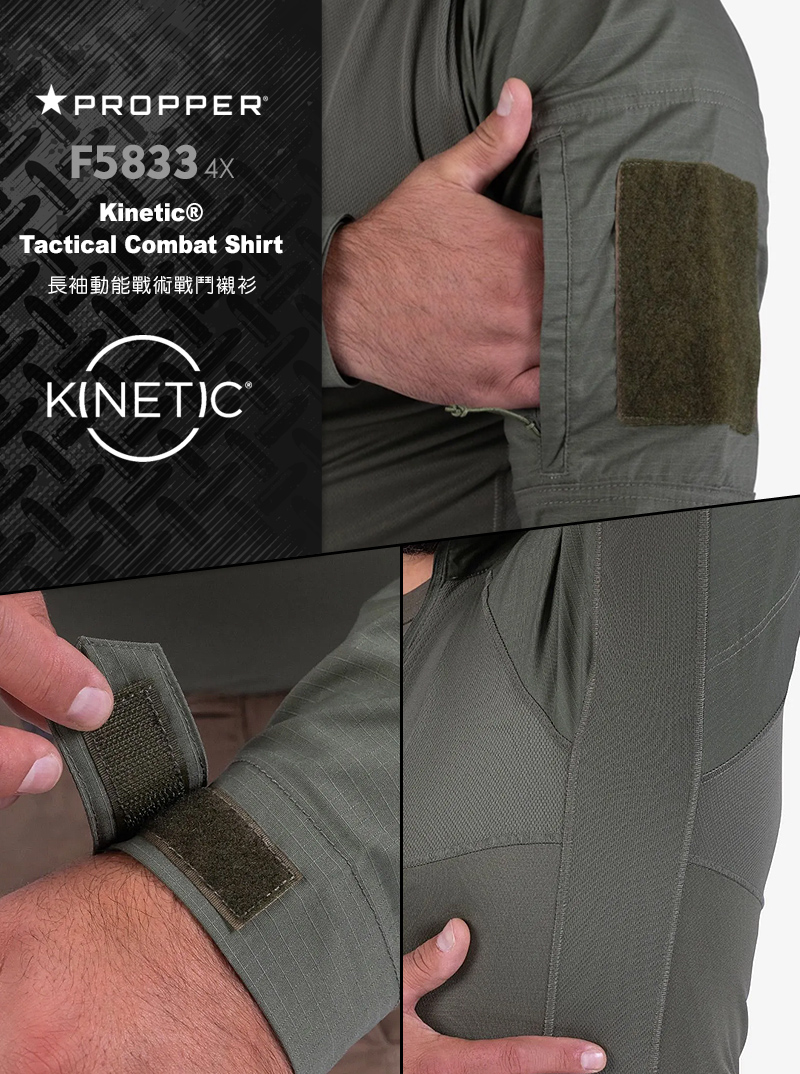 Kinetic戰鬥襯衫專為滿足執法人員和軍人的需求而設計,注重穿在重型防彈衣之下的功能性和舒適性,達到了目標。 襯衫主體採用業界最佳的防鉤紗100%聚酯纖維製成,具有吸濕排汗、快乾和抗菌特性,讓您全天保持涼爽和清新。